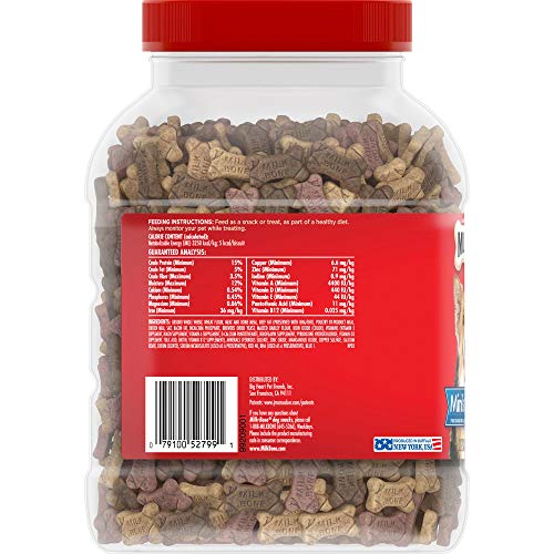 Have more fun when you treat more often with Milk-Bone Mini’s Flavor Snacks a variety of irresistibly meaty mini dog biscuits. With only 5 calories per treat, it’s amazing how much deliciousness is packed in each one. The secret? These mini dog biscuits are basted for added, baked-in taste. Each pack contains an assortment of three flavors: beef, chicken and bacon. And they’re small enough for dogs of all sizes to enjoy often (In fact, they’re small enough to make great dog training treats, too!) Just like Milk-Bone Original dog biscuits, Milk-Bone Mini’s Flavor Snacks mini dog biscuits are fortified with 12 vitamins and minerals to help keep your dog at his or her best. Plus, they’re proudly produced in Buffalo, N.Y., U.S.A., by the #1 trusted brand in dog treats. So you can treat your dog with confidence. Go ahead, bust open some crunchy, meaty goodness, and let the fun begin.